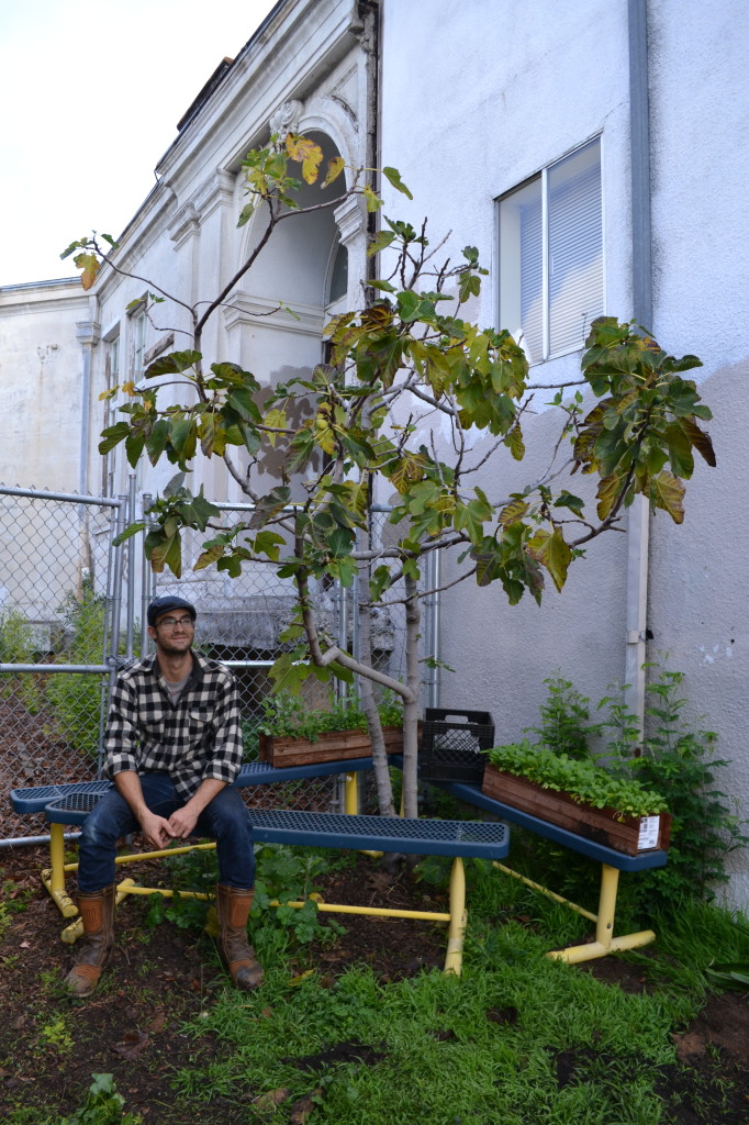 In developing this exciting demonstration garden, Young Urban Moshav is sourcing labor and products from within the community whenever possible. As of the end of November 2014, exciting progress has been made. The garden has received its first major contribution from Katherine Gulley at Raised Bedlam Woodworks in Berkeley. A beautiful redwood table and bench, including end planters and a garden box, are already on site! Katherine makes custom outdoor and reclaimed furniture. She herself grew up in Berkeley attending the JCC and proudly claims that she was at her after school program at the JCC when the big earthquake of ‘89 hit.